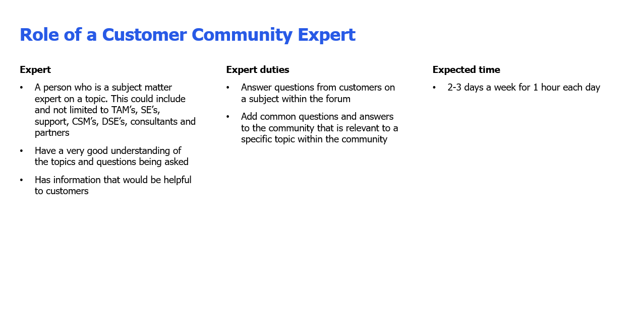 3.Commitment to community experts to the to support customer questions (June – onward)
