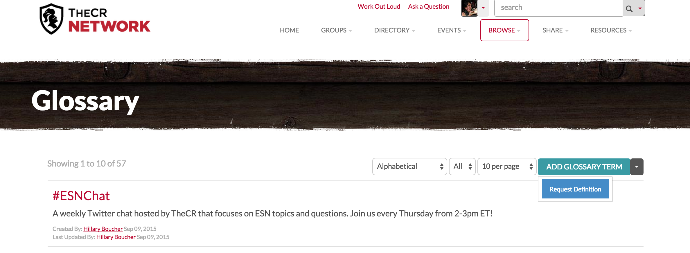 ProTip: For those times when you think of a term we don't have yet, but are a bit shaky on the definition, click the drop down button on the right side of "Add Glossary Term" to request a definition be provided.