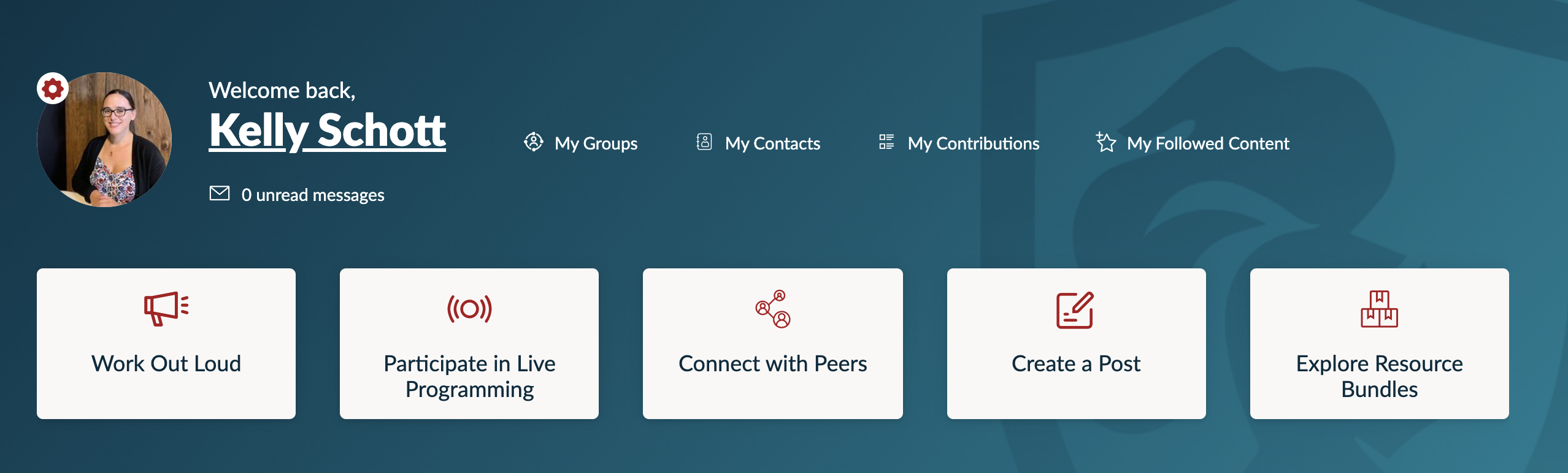 Another opportunity for scalable personalization came again with security groups, but this time with more topic-based content. In order to surface discussions and resources that may be more relevant for some members over others (think specifics like non-profit-related conversations or discussions on support communities), we created a space on the home page (built on security group permissions, of course) that maps to fields that members can fill out on their profiles.